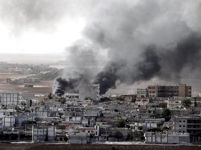Исламисты атакуют город с востока, сейчас бои переместились на южные окраины, сообщает CBS News. Реактивная ракета попала в минарет в центре Кобани, город накрыт облаком дыма и пепла. Как стало известно, взрыв автомобиля на востоке населенного пункта, у главного полицейского участка и других органов безопасности, устроил смертник. Предположительно, бомба взорвалась раньше, чем должна была, поэтому жертв не было. В воскресенье и понедельник силы коалиции нанесли по приграничному городу не менее 10 авиаударов.