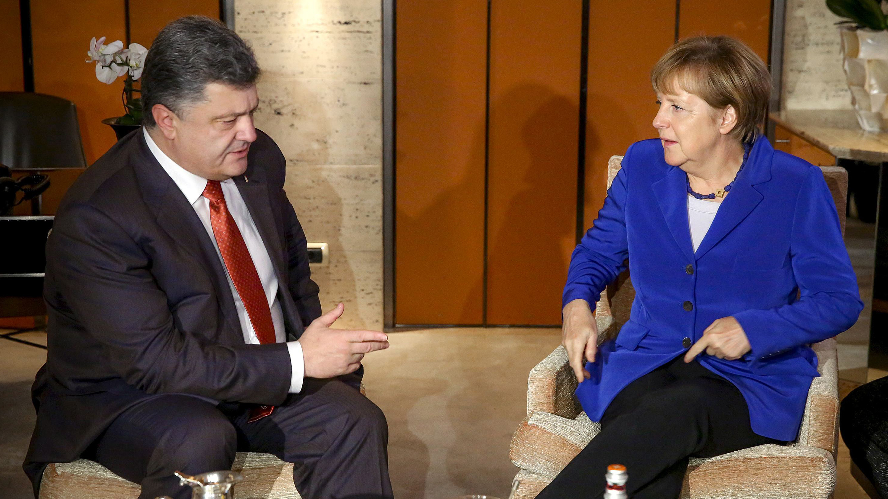 В четверг Петр Порошенко уже провел встречи с президентом и премьер-министром Италии Джорджо Наполитано и Маттео Ренци, а также с канцлером Германии Ангелой Меркель. В ходе часового разговора Порошенко и Меркель, как сообщил пресс-секретарь украинского президента Святослав Цеголко, стороны обсудили важность полного выполнения минских договоренностей, необходимость полного прекращения огня, установления контроля на украинско-российской границе и проведения местных выборов в районе конфликта соответствии с украинским законодательством.