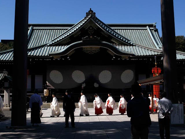 111 японских парламентариев посетили "милитаристский" храм Ясукуни, а премьер прислал подношение