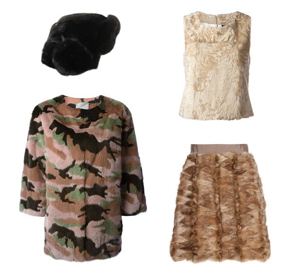 Первый из трех наборов, подготовленных Vogue, включает в себя шапку-ушанку из кроличьего меха Moncler Gamme Rouge и пальто от Valentino камуфляжного цвета.