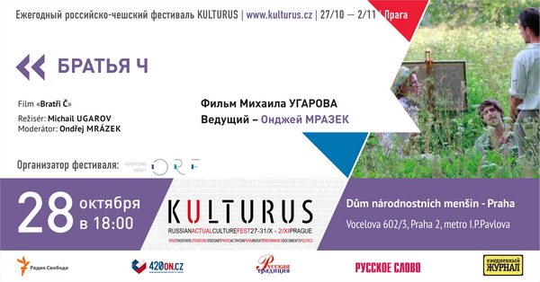 Во вторник пройдёт премьера ленты Михаила Угарова по сценарию Елены Греминой «Братья Ч» о молодых годах Чехова. Это довольно важно, потому что в прошлом году на Kulturus приезжал Театр.doc с премьерой спектакля самой Греминой «150 причин не защищать Родину», а в этом году у самого этого театра возникли проблемы с помещением. Михаил Угаров, к сожалению, на фестиваль приехать не смог, но обсуждение его фильма всё равно будет очень серьёзное. Модерирует это обсуждение чешский журналист и славист Онджей Мразек.
