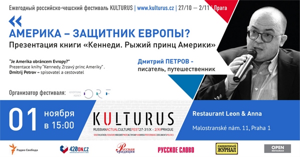 Фестиваль Kulturus это выездное мероприятие, которое проходит осенью в Праге. Его полное название — Фестиваль актуальной русской культуры. Важно отметить, что в Фестивале участвуют представители совершенных разных сфер и областей культуры, начиная от отчасти развлекательных, таких как кино, театр или фотография, и заканчивая политологами, социологами, культурологами и правозащитниками. При этом мы, конечно, не уходим в политику, публицистику и откровенно злободневные темы, а стараемся говорить о современной культуре России с учётом истории взаимоотношений с Чехией, Европой и остальным миром.