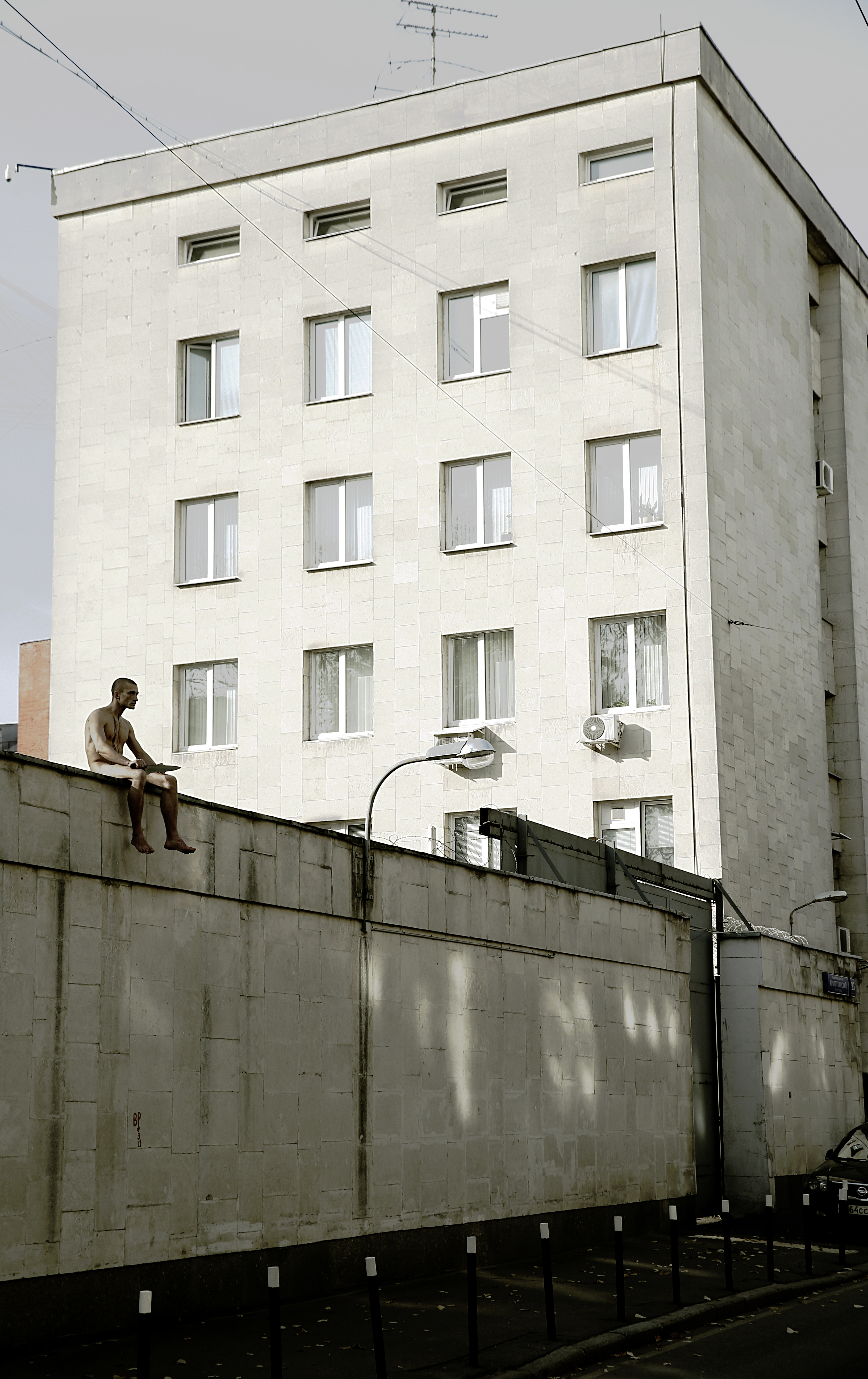 – Если быть честным, то они меня не особо волнуют. В замысле у меня это никогда не присутствует, и я очень не хотел бы спекулировать на религиозной тематике. Христианские коннотации в виде той фальсификации, которая насаждается со времен императора Константина, могут очень искажать высказывание, надстраивая вокруг действия ореол мученичества. От такого ореола как рукой подать до пастырей и овечьей покорности. Я же настаиваю на том, что овечья покорность – это и есть основная причина беды, с которой мы все столкнулись. Нет большего зла, чем законопослушный гражданин своего государства, и история концентрационных лагерей Третьего рейха может послужить самым очевидным тому доказательством. Если же говорить об аутентичном христианстве, то изначально это была идея богоборчества и глубокого сопротивления институтам собственности и власти. Возвращаясь к вопросу о визуальной ассоциации, то это можно было бы объяснить тем, что одно из тел, участвующих в акции, – голое, а другие участники в полной экипировке и вооружены до зубов. Или с тем, что я неподвижен и не оказываю сопротивления власти, когда она уже втянута в ситуацию и работает на формирование высказывания. Сейчас я смотрю на это изображение, когда охрана меня стаскивает, да, тут есть определенные аналогии, даже пластические. Но моя задача – осуществить как можно меньше действий, чтобы вся работа была сделана руками представителей власти, чтобы они построили высказывание. Они сами должны разрушать декорацию, которую их поставили охранять и достраивать. В этом и состоит методика моей работы. Сложность в том, что я никогда не могу предсказать, как они себя поведут. Эта акция была достаточно трудной именно потому, что это был институт психиатрии, и представители власти пробовали меня сломать лживой заботой, подкладывали какие-то маты под стену, предлагали дать отклик, прекратить свое действие. А этого делать ни в коем случае нельзя. Это можно сравнить с тем, что люди держат голодовку по 30 дней, а им приносят каждый день горячий завтрак, обед и ужин. Если человек поведется на эту заботу, он сломается и будет уничтожен. Поэтому ни при каких обстоятельствах мне нельзя было поддаться на эту подлую провокацию.
