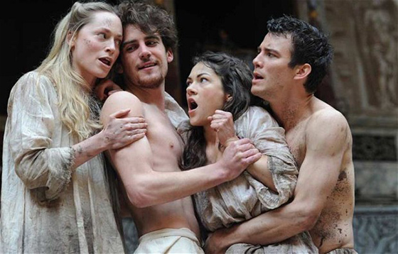 Как и в подавляющем большинстве постановок «Глобуса», оригинальность режиссерской интерпретации в «Сне» неизбежно отходит на второй, если не на третий, план — слишком уж много «соавторов» у спектакля, концепция которого буквально «лежит в зрительном зале». Оставляя за собой исключительно функции добросовестного рассказчика, театр не без лукавства щеголяет собственной невинностью. Стилизация под елизаветинский театр становится лишь частью игры, содержанием которой неизменно оказывается коллективное переживание шекспировских текстов. У актеров «Глобуса» есть особая привилегия: они не обязаны делать риторику правдоподобной, непременно «психологически достоверной», оставляя место для чистой поэзии.