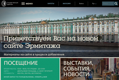Государственный Эрмитаж запустил новый официальный сайт, разработанный к 250-летию музея. Ресурс позволяет заказать билеты и выбрать маршрут по Эрмитажу.