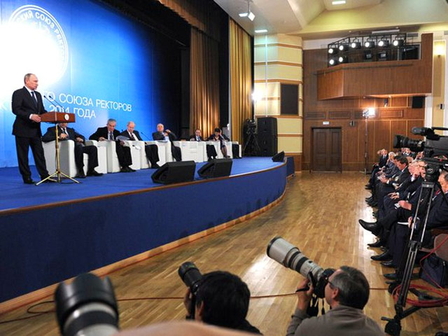 На съезде ректоров Путин также пообещал, что Россия не будет изолировать свою систему образования от международной, принимая во внимание международные рейтинги. "Мы не должны изолироваться ни в коем случае", - уверен российский лидер. "У нас много своеобразия", но "замыкаться в себе", подчеркнул он, "тоже нельзя".