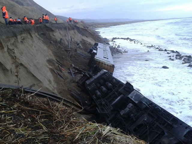 На Сахалине возбуждено уголовное дело по факту схода поезда с рельсов на берегу моря