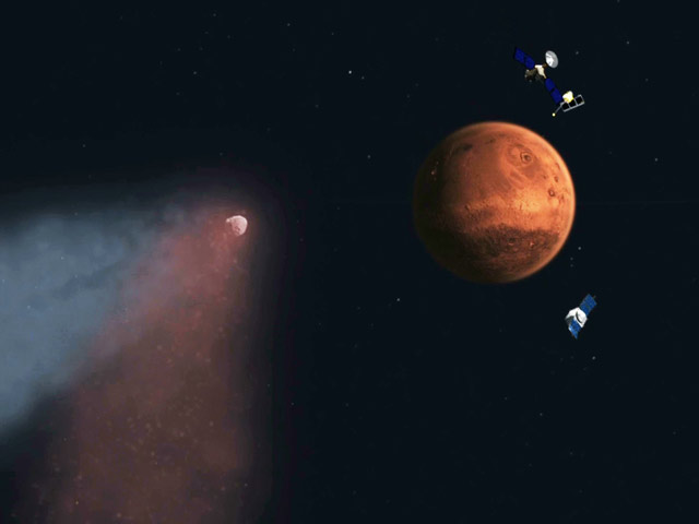 Комета Siding Spring прошла мимо Марса 19 октября 2014 на скорости 203 тысячи километров в час на расстоянии 139 500 километров. Это расстояние равно половине дистанции между Землей и Луной. Кроме того, как утверждает NASA, это в 10 раз больше, чем расстояние, на которое когда-либо приближались кометы к Земле.