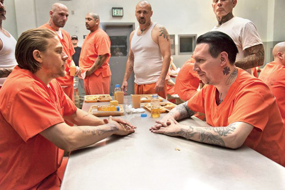 © FX Байкеры давно стали неотделимой частью американской жизни и культуры, появляясь как на страницах книг Хантера Томпсона, так и на экране (достаточно посмотреть на внушительный список фильмов, где фигурируют бородачи на «харлеях»). Стоит отметить, что в «Сынах анархии» речь идет именно о существующих вне закона байкерских клубах, фактически бандах байкеров, поэтому и мир сериала — прежде всего криминальный. Его сложная и насыщенная структура включает в себя представителей всех рас. Байкерам из разных клубов приходится жить бок о бок с уличными бандами, итальянской и русской мафией, китайскими триадами и мексиканскими картелями, тюремными группировками вроде «Арийского братства» или «Черной партизанской семьи», участниками «Подлинной Ирландской республиканской армии». Обозначение по цвету кожи в этом мире «белых», «черных», «желтых» и «коричневых», не слишком осведомленном о политкорректности, служит не столько оскорблением, сколько идентификатором. Но в конечном итоге реально всем правит один цвет — зеленый цвет банкнот, как говорит Джекс Таллер, повторяя слова тюремного эксперта об «Арийском братстве». Цвет кожи вовсе не определяет степень твоего влияния. Байкеры, живущие вне закона, несмотря на закаленность и потрепанность жизнью, не являются высшим звеном пищевой цепочки и несут изрядные потери при столкновении с такими хищниками-тяжеловесами, как чернокожий король гангстеров Дэймон Поуп или его преемник Огаст Маркс. Как для полицейских, так и для глав криминальных синдикатов они просто «белый мусор», white trash. И Джексу Таллеру приходится лезть из кожи вон, чтобы доказать, что его клуб может претендовать на более важное место.