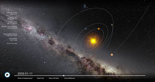 На сайте агентства также опубликована трехмерная инфографика, позволяющая определять местонахождение «Розетты» в реальном времени.