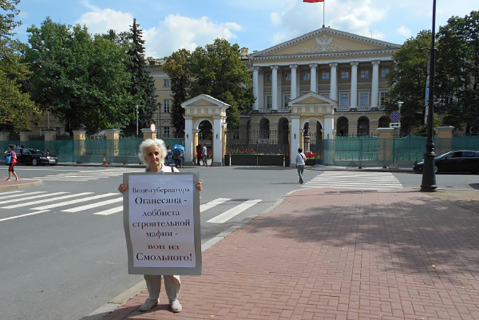 Пока в Заксе Георгий Полтавченко представлял кандидатов в новое правительство Петербурга, перед зданием парламента проходил одиночный пикет с требованием не утверждать Марата Оганесяна на пост вице-губернатора. Активисты стояли с плакатом «Вице-губернатора Оганесяна — лоббиста строительной мафии — вон из Смольного!». Жители кварталов Ульянки, Ржевки и Полюстрова протестовали против программы реновации, в рамках которой расселяют городские хрущевки. По их мнению, Оганесян отстаивает интересы застройщиков. Программа реновации нескольких кварталов Петербурга вызвала вопросы и у депутатов Закса. Перед голосованием за новое правительство Борис Вишневский поинтересовался у Оганесяна, что будет с расселением хрущевок, так как, по мнению депутата, застройщики не выполняют свои обязательства.В ответ на это Оганесян отметил, что у программы есть недостатки, но в целом он ее поддерживает.