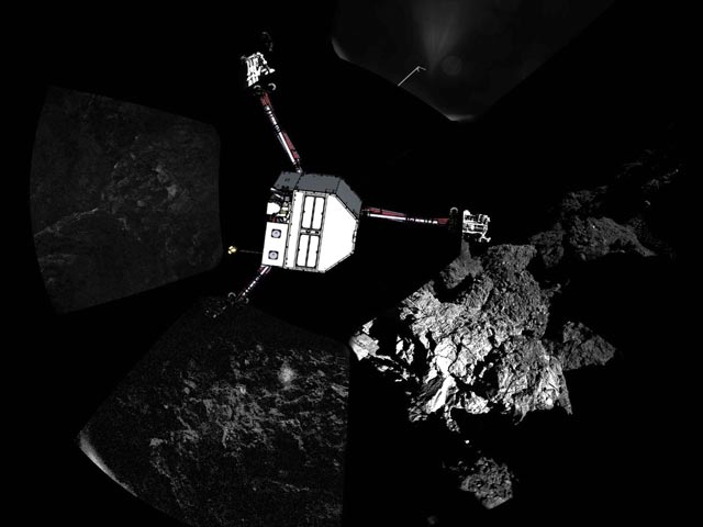 Спускаемый модуль Philae был доставлен до кометы Р67/Чурюмова-Герасименко зондом Rosetta, который был запущен 2 марта 2004 года. Цель миссии состоит в том, чтобы получить информацию о зарождении и эволюции Солнечной системы. Rosetta достигла кометы 12 ноября 2014 года. Спуск аппарата Philae на поверхность кометы занял примерно семь часов.