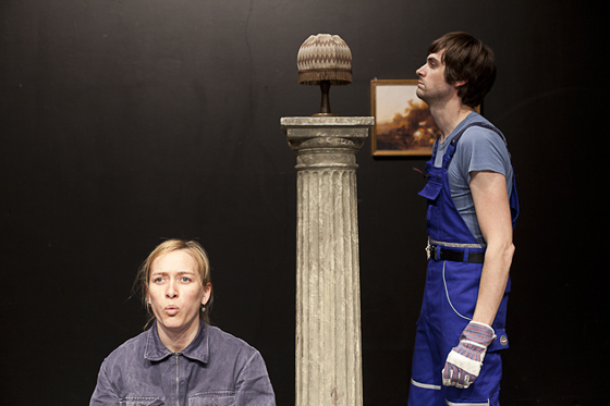 — Да, я отдаю себе отчет в том, что здесь работает пирамидальная структура. Главный в театре — директор, потом режиссер. Но я как раз хотел попробовать дать актерам больше свободы и пространства для импровизации. До определенной степени — потому что мы все-таки собирали спектакль за три недели. За год мы могли бы полностью его сымпровизировать. Но все-таки актеры сами написали часть своего текста. Есть несколько импровизационных сцен. Одна — в которой вообще нет текста, то есть актер каждый вечер говорит что бог на душу положит на определенную тему. Я предложил им самим поучаствовать в создании структуры спектакля. У нас есть фиксированная «пьеса» и мизансцены, но актеры принимали участие в их создании.