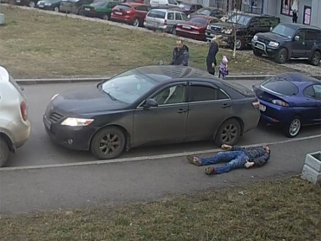 В это время из автомобиля злоумышленника вышла женщина, предположительно его супруга. Она пыталась оттащить агрессивного родственника от его жертвы, но тот продолжил избиение. Когда потерпевший упал навзничь и перестал двигаться, его оппонент спокойно достал из салона машины ребенка, которому на вид исполнилось не больше пяти лет, передал его своей спутнице и направился вместе с ней восвояси.