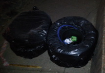 Как рассказал изданию житель города по имени Виктор, в 23:30 четверга он, идя с друзьями к метро после тренировки, увидел на памятнике плакат с надписью "Русофоб", а под ним - четыре автопокрышки, завернутые попарно в мешки для мусора. Внутри одной из пар покрышек стояло пластмассовое ведро. В нем, как выяснилось впоследствии, находилось около пяти коктейлей Молотова и часовой механизм.
