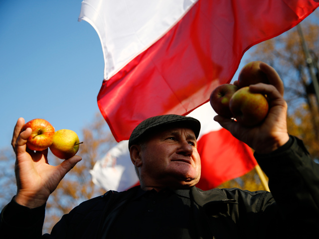 В настоящее время польские аграрии несут ощутимые убытки. Например, в Брюсселе прошла акция протеста против принципов выплаты компенсаций, предложенных Европейской комиссией в связи с введением Россией эмбарго. Заметим, что в Польше поначалу с юмором отнеслись к санкциям, предложив ответить на них акцией под названием Jedz Jablka NaZlosc Putinowi ("Ешьте яблоки назло Путину").