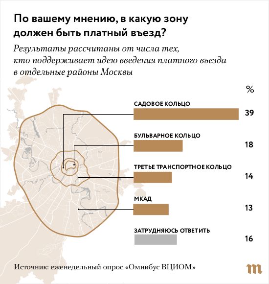 Говоря о поддержке москвичами идеи платного въезда в Москву, Ликсутов ссылался на опрос ВЦИОМ, который появился за 2 дня до комментария чиновника. Почти половина всех опрошенных высказались за платный проезд в отдельные районы. Менее 7% поддерживают идею расширения платной зоны до МКАДа. Среди автовладельцев «за» — 47%, среди пешеходов — 54%. Часть респондентов готова поддержать инициативу властей в случае, если вырученные деньги пойдут на улучшение дорог.