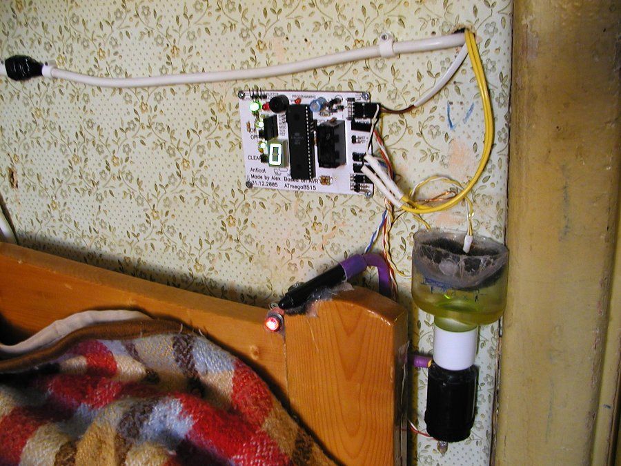 За два года работы системы коту удалось совершить свое грязное дело всего один раз — с полки над кроватью упал предмет и перегородил лазерный луч, так система была выведена из строя.
