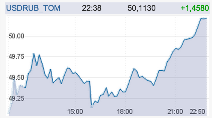 По данным Московской биржи, вечером 28 ноября доллар обновил исторический максимум, подскочив на 1,34 руб. и остановившись на отметке 50,01 руб. за доллар. Предыдущий рекорд был установлен 27 ноября после решения ОПЕК не снижать добычу нефти, тогда цена поднялась до 48,655 руб. за доллар.