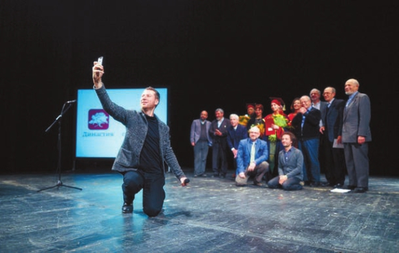 После раздачи слонов члены жюри и лауреаты вышли на сцену для шаманского действа под названием «коллективное селфи». Заключительные слова произнес основатель фонда «Династия» Дмитрий Зимин: