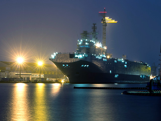 Контракт стоимостью 1,2 млрд евро между "Рособоронэкспортом" и французской компанией DCNS на строительство двух десантных вертолетоносных кораблей типа Mistral был заключен летом 2011 года. Кормовые части вертолетоносцев строили на Балтийском заводе в Санкт-Петербурге. Стыковка с головными частями и окончательная достройка выполнялась в Сен-Назере.