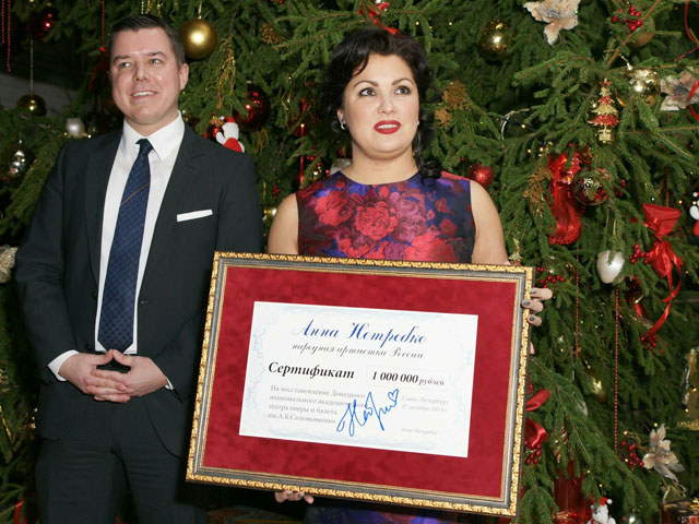 Российская оперная звезда Анна Нетребко пожертвовала один миллион рублей (около 15 тысяч евро) Донецкому национальному академическому театру оперы и балета им. А.Б. Соловьяненко, сообщает DW-World.