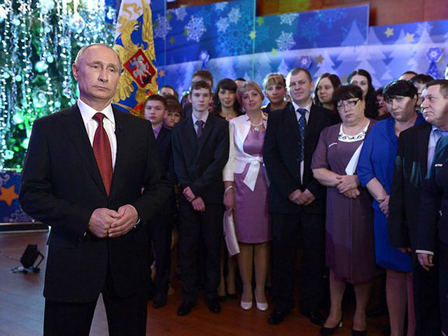 В прошлом году Владимир Путин записал два обращения к россиянам. Первое - заранее, на фоне Кремля, а второе - в Хабаровске, где президент встретил 1 января 2014 года.