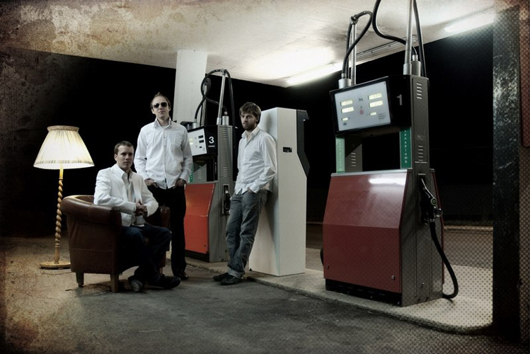 Только написав этот первый абзац, я заметил, что его мебельная аналогия была подсказана обложкой альбома трио Колина Валлона Contreband. Сама эта фотография такова, что беглый взгляд не регистрирует ее необычности: композиция кадра типично интерьерная, немедленно узнаваемые кресло и торшер в сочетании с расслабленными позами людей задают тон, и в результате крыша бензозаправки превращается в потолок, чернота ночи — в темные стены, а топливные колонки напоминают какие-то комоды из европейских 60-х. Такая игра с механизмом узнавания, по-видимому, говорит что-то о намерениях музыкантов. Они не хотят просто обтягивать старое кресло новой тканью — они хотят взять его и вместе со слушателем вынести в новое пространство, которое можно назвать околоджазовым.