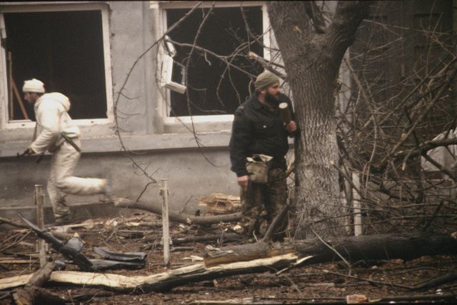 Бомбить Грозный начали с района Трампарка, где, в основном, проживали русские семьи. Уверен, это не случайное совпадение. Москва хотела немедленно рассказать о геноциде русских. Вообще в Чечню отправляли тех командиров, кто раньше служил здесь или родился, как генерал Трошев. Они прекрасно знали все объекты, включая больницы. Нам пришлось наспех организовать госпиталь в подвале президентского дворца. Рядом находились штаб и радиостанция, которой руководил полковник Валид Таймасханов, бывший советский офицер и спец по радиоразведке. Он вычислял координаты и позывные противника, направляя их огонь друг на друга. Генерал Иван Бабичев, узнав об этом, связался с нами по рации и бешено орал: «Я вас, б***ь, на первом столбе повешу!»