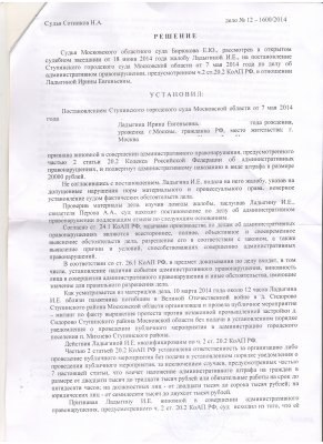 При этом заведенный в полиции протокол о правонарушении, как отмечает Ладыгина со слов своего представителя, ходившего с ней на заседания, был оформлен без указания числа и места.