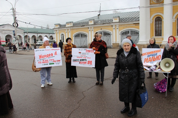 Практически на все письма, направленные в различные властные структуры города и области, приходили одинаковые ответы: пруд закончил своё существование 10 (5) лет тому назад, восстановить его сможет только этот инвестор, построив на пруду кафе. Телевидение показывало картинки даже нескольких «красивых» проектов, но всегда на фоне заброшенного ныне пруда, внушая жителям, что только данная постройка – идеальный выход из сложившейся ситуации. При этом НИ ОДНОГО РАЗА не было сказано, что это именно администрация (как собственник) и застройщик (как арендатор) довели пруд до такого состояния. Льющиеся потоком в сети Интернет и областных газетах вопросы о том, где были раньше эти обеспокоенные граждане, ответов на них не предполагали, поскольку люди действительно не были равнодушны и неоднократно обращались к администрации города и к депутатам по вопросу угасания пруда. В том числе и в стихотворной форме – в 2011 году.