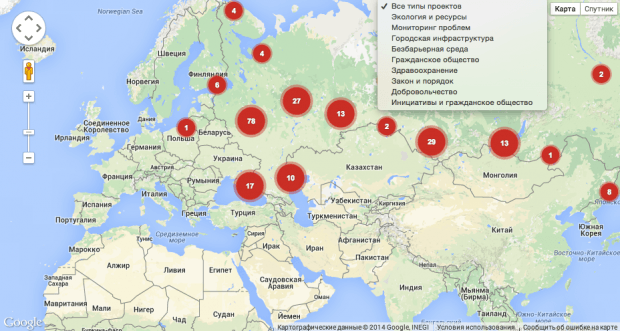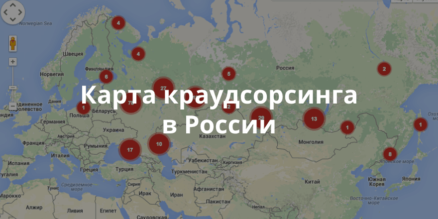 Карта краудсорсинга в России – это совместный проект портала Crowdsourcing.ru и независимого эксперта Светланы Гордеевой. Карта состоит из краудсорсинговых проектов, запущенных в настоящее время и привязанных к определенному географическому местоположению.
