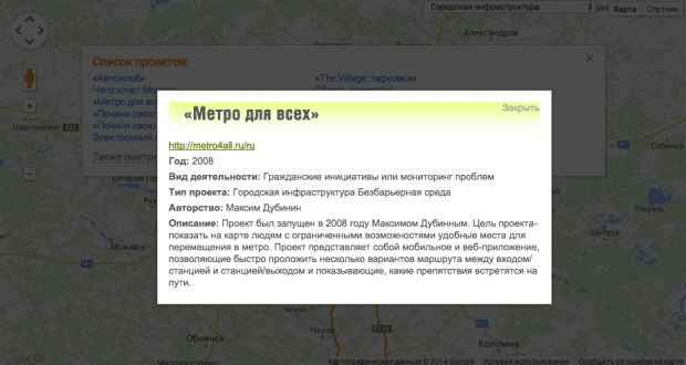 Любой желающий может добавить свой или найденный им проект на карту. Для этого необходимо отправить описание проекта: