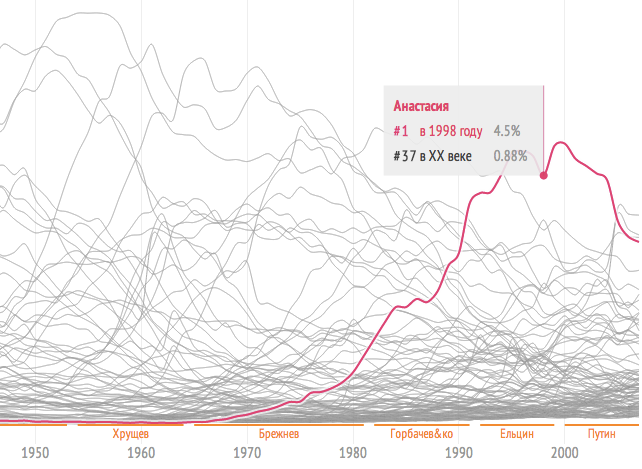 Визуализатор показал изменение популярности имен в Москве в XX веке