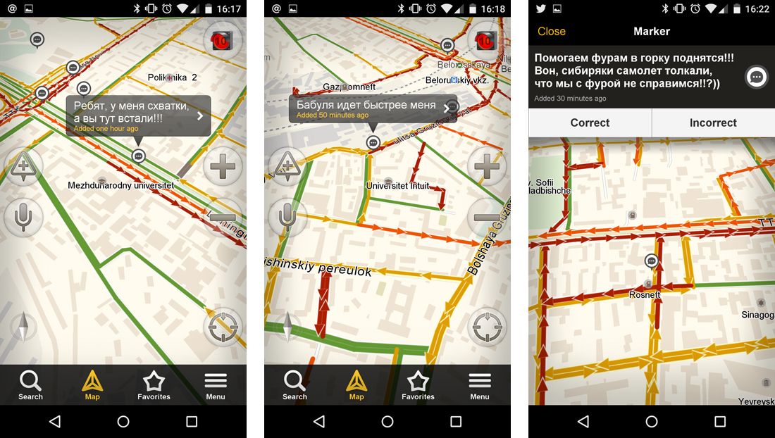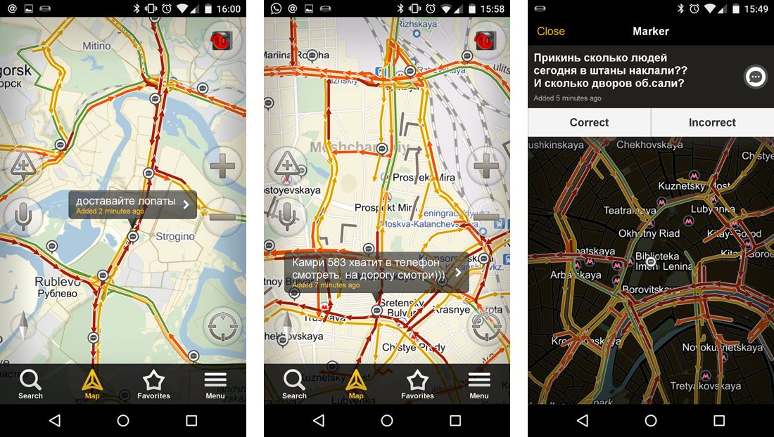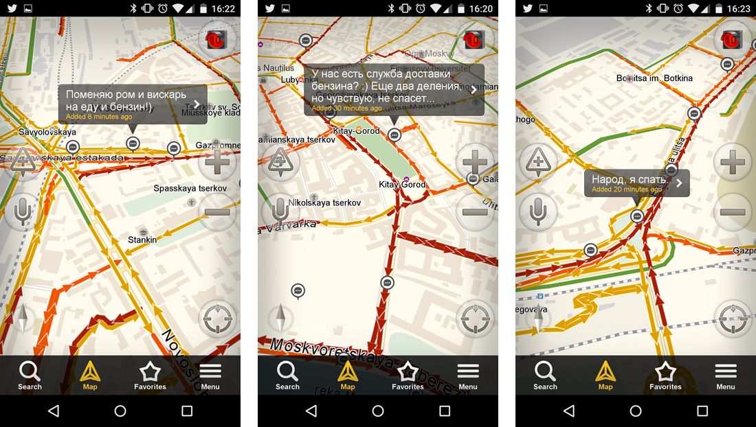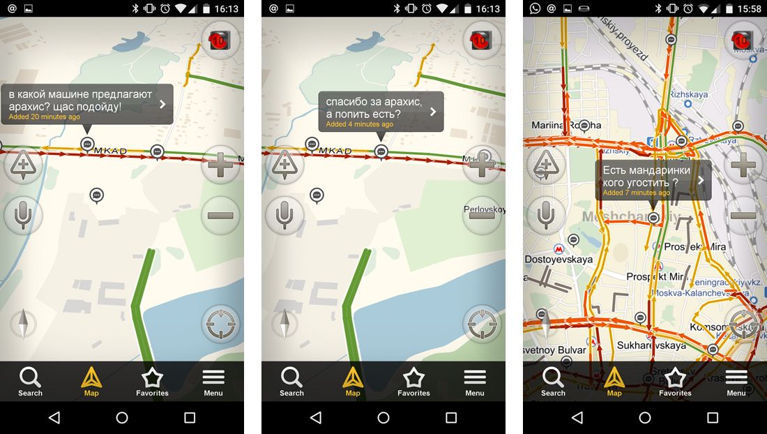 25 декабря с самого утра Москва встала в 10-балльных пробках — до места работы автомобилисты добирались несколько часов. К вечеру пробок стало еще больше, но 11-го балла в «Яндекс.Пробках» не предусмотрено. От нечего делать водители общаются в «Разговорчиках» (сервисе текстовых сообщений, которые наносятся на карту с помощью геолокации) — передают друг другу продукты и бензин, ругаются, шутят. «Медуза» посмотрела, о чем говорят москвичи, стоя в пробках.
