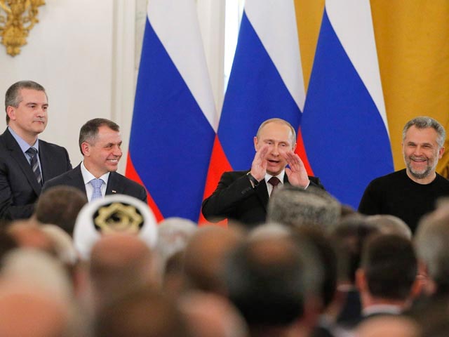 К концу года изменилось обоснование Путиным важности присоединения Крыма, констатирует издание. В Послании Федеральному собранию 4 декабря президент заявил: "И именно на этой духовной почве наши предки впервые и навсегда осознали себя единым народом. И это дает нам все основания сказать, что для России Крым, древняя Корсунь, Херсонес, Севастополь имеют огромное цивилизационное и сакральное значение". Он подчеркнул, что "именно так мы и будем к этому относиться отныне и навсегда". Slon.ru считает, что это заявление свидетельствует о том, что "из времени Россия выпадает, а способы объяснять присоединение Крыма меняются".