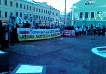 Во вторник на Манежной в пикетах участвовали около 30 человек. Они стояли с плакатами "Позор путинскому режиму", "Свободу героям 6 мая", "Не будет свободы - будет Майдан", "Лучше Майдан, чем Тахрир". Никто из участников акции задержан не был.