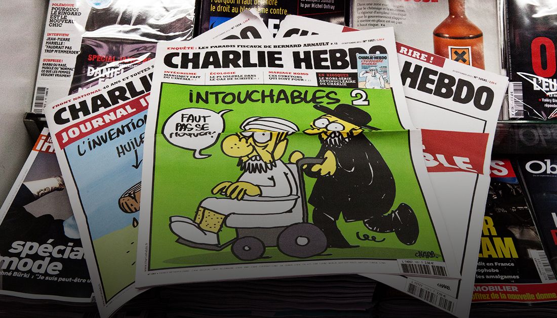 В Charlie Hebdo считают, что для шуток нет запретных тем, и религия — не исключение. В 2008 году газета выиграла судебный процесс по иску от представителей мусульманских общин, возмущенных перепечаткой карикатур на пророка Мухаммеда. В редакции объясняют, что еженедельно публикуют множество провокационных материалов на различные темы, однако резко негативную реакцию вызывают только карикатуры на пророка.