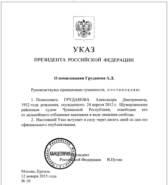 Третьим помилованным стал 82-летний Александр Груданов, который был осужден на 6 лет колонии строгого режима за убийство. В суде Груданов полностью признал свою вину.