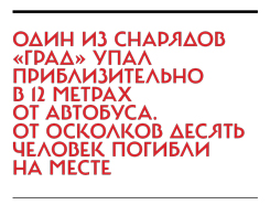 Это случилось 13 января. Судя по первым свидетельствам пострадавших, опубликованным в сети, и сообщениям наблюдателей ОБСЕ, автобус двигался от Волновахи по направлению к Донецку, остановился на КПП для проверки, но через десять минут начался обстрел. На видео с места событий, появившемся в интернете уже на следующий день после трагедии, припаркованный на обочине автобус действительно стоит примерно в том месте, где обычно происходит проверка документов. По данным ОБСЕ, около 14:30 один из снарядов «Град» упал приблизительно в 12 метрах от автобуса. От осколков десять человек погибли на месте, еще двое умерли в больнице Волновахи, куда всего было доставлено 18 пострадавших. Как рассказали NT врачи районной больницы, трое уже выписались.