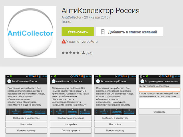 Национальная ассоциация профессиональных коллекторских агентств (НАПКА) недавно потребовала от Google удалить его, но безрезультатно. "Антиколлектор" разработал Евгений Пятковский из Новосибирска, мотивируя тем, что назойливые звонки коллекторов незаконны. Но коллекторы заявляют, что это приложение лишает права представителя кредитора связаться с заемщиком и потребовать возврата долга.