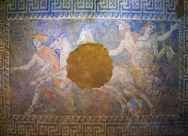 В начале сентября археологи нашли две статуи молодых женщин, охраняющих погребение. Спустя месяц, когда ученым удалось расчистить первое помещение гробницы от песка, была обнаружена большая — 3 на 4,5 метра — мозаика с изображением Аида, похищающего Персефону, и Гермеса, указывающего путь в царство мертвых. Наконец, в ноябре произошло то, чего все ждали: в гробнице оказались человеческие останки. Немедленно были высказаны самые экзотические предположения: это кости Роксаны (жены Александра), Олимпиады (его матери), Гефестиона (его друга и, возможно, любовника). Катерина Перистери, глава амфипольской экспедиции, повторила свое осторожное предположение, что гробница, скорее всего, принадлежала одному из соратников Александра.