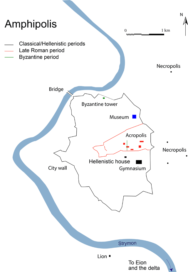 Современный Амфиполи расположен в номе (районе) Серре в провинции Центральная Македония. Геродоту (V век до н. э.) город был известен под названием Эннеагодой (Девять дорог). Афиняне смогли покорить Девять дорог только со второй попытки — в 436 году до н. э., тогда же они дали ему имя Амфиполь, а уже через 12 лет его отбили спартанцы. Филипп II, македонский царь, отец Александра Великого, взял город в 357 году до н. э., укрепил его и обустроил.