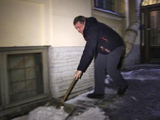 Вице-губернатор Петербурга, предлагавший горожанам самим бороться со снежными завалами, как "настоящий мужик" вышел на уборку улиц