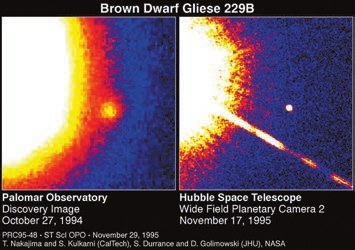 Коричневые карлики оставались гипотетическими объектами до середины 1990-х годов, когда развитие наблюдательной техники наконец достигло уровня, необходимого для обнаружения столь тусклых объектов. Дело в том, что коричневые карлики, так и не обзаведшиеся внутренним источником энергии, светятся лишь за счет накопленного при сжатии тепла.