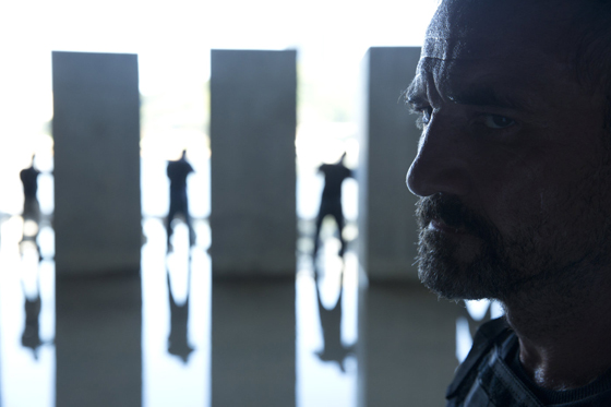 © Universal Pictures И вот наконец финальная схватка, чем-то напоминающая театрализованные массовые действа в уся-фильмах Чана Че: стройно движутся тысячи людей с факелами — безучастные статисты, которых валят, как серп — колосья, шальные пули. Через это человеческое поле пробиваются друг к другу антагонист и протагонист, чтобы сойтись в финальной поножовщине. Камера, прежде скрупулезно фиксировавшая каждую трещину бетонных поверхностей, каждую плитку кафеля на стене, все изъяны кожи актеров, вдруг устало уходит в расфокус, превращая экшен в дуэль цветовых пятен, пляску огней, калейдоскоп цветов, откровенно рекламирующих все возможности сегодняшнего цифрового кино.