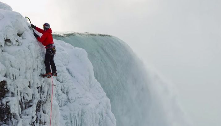 Альпинист Уилл Гадд (Will Gadd) смог взобраться на Ниагарский водопад по замерзшему потоку. Как рассказывается на сайте Red Bull, он стал первым человеком в истории, сумевшим пройти этот водопад против течения.