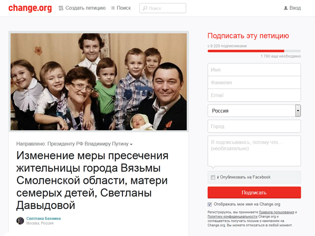 Подписи под призывом освободить из-под стражи многодетную мать Светлану Давыдову, обвиняемую в разглашении государственной тайны во время звонка в посольство Украины, оставили более 28 тысяч человек.