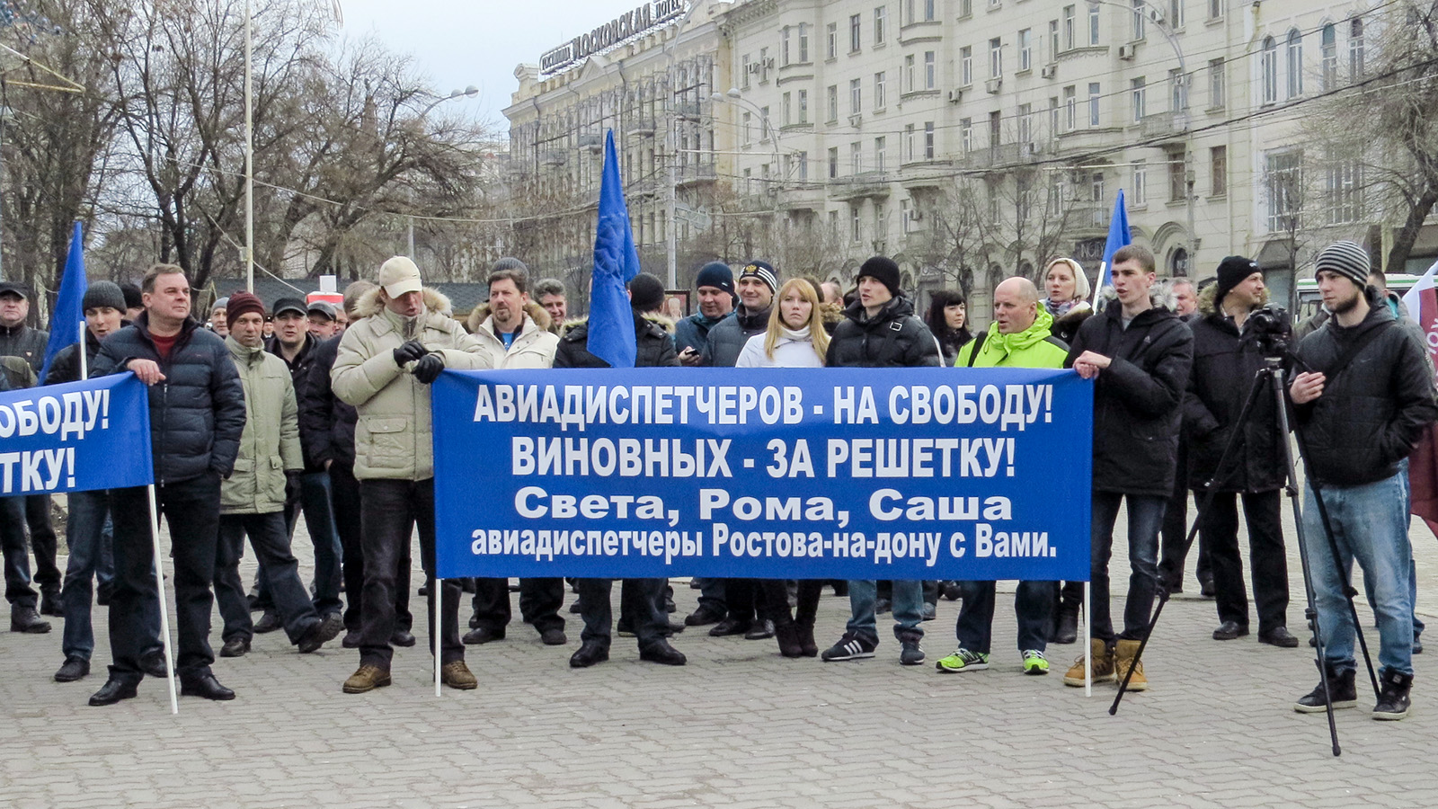 В Ростове-на-Дону в четверг, 5 февраля, авиадиспетчеры Северо-Кавказского центра автоматизированного управления воздушным движением "Стрела" провели митинг в поддержку своих коллег – Светланы Кривсун, Романа Дунаева и Александра Круглова. Они были арестованы вскоре после катастрофы в московском аэропорту Внуково, в результате которой погиб глава концерна Total Кристоф де Маржери.