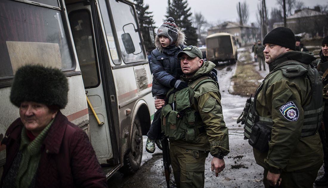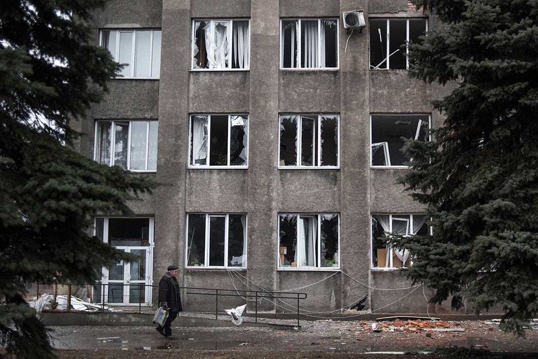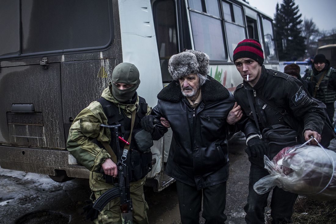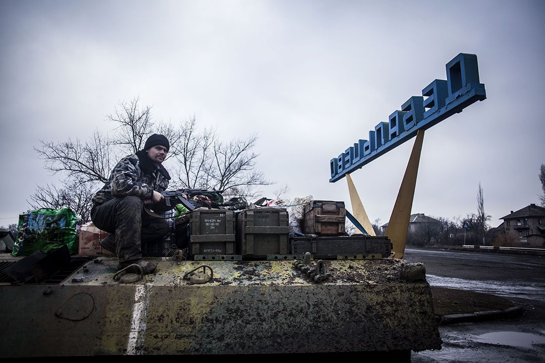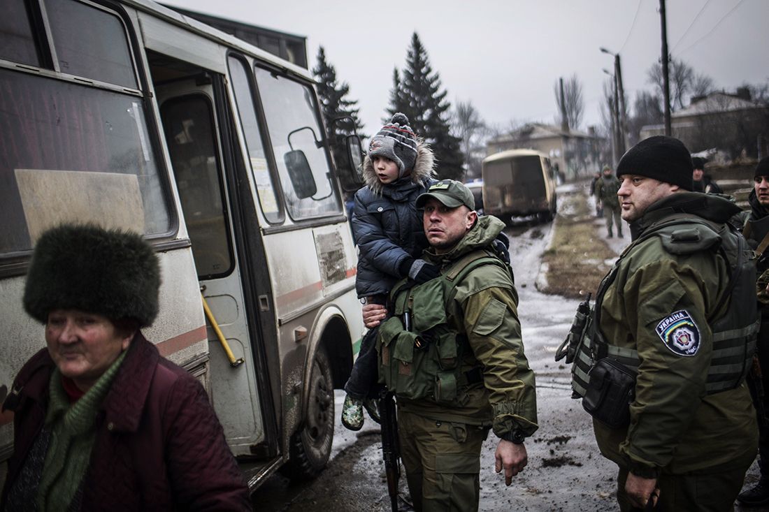 Photo: Petr Shelomovskiy / Demotix / Corbis / All Over Press Destroyed buidling in Debaltseve, 2 February 2015.Photo: Petr Shelomovskiy / Demotix / Corbis / All Over Press Private house in Debaltseve caught fire after shelling. Mobile phone network is down so it’s not possible to call a fire brigade.Photo: Maksim Levin / Reuters / Scanpix Local residents gather inside a bomb shelter in Debaltseve, January 30, 2015.Photo: Sergey Polezhaka / Reuters / Scanpix A woman walks to cook on a fire outside her house, February 3, 2015.Photo: Sergey Polezhaka / Reuters / Scanpix A man walks past the damaged city council building, February 3, 2015.Photo: Petr Shelomovskiy / Demotix / Corbis / All Over Press Locals have to melt snow on open fire as there is no electricity, gas or water. 30 January 2015.Photo: Petr Shelomovskiy / Demotix / Corbis / All Over Press Water is distributed in Debaltsevo Ukraine as locals experience a total blackout and no running water.Photo: Anastasia Vlasova / EPA / LETA Local citizens receive free bread, 30 January 2015.Photo: Petr Shelomovskiy / Demotix / Corbis / All Over Press A group of children and a man await to be evacuated from a pickup point in the disputed town. 31 January 2015.Photo: Manu Brabo / AFP / Scanpix A Ukrainian army soldier holds a Ukrainian kid while evacuating citizens from Debaltseve, February 3, 2015.Photo: Gleb Garanich / Reuters / Scanpix A woman and a child look through a bus window before leaving as people flee the conflict in Debaltseve, February 5, 2015.Photo: Gleb Garanich / Reuters / Scanpix Local residents wait for a bus to flee the conflict, February 5, 2015.Photo: Petr Shelomovskiy / Demotix / Corbis / All Over Press A man jumps on a large lorry carrying evacuees fleeing from the increasing battles between pro-Russian separatists and the Ukrainian army, 31 January 2015.Photo: Manu Brabo / AFP / Scanpix An elderly Ukrainian man is helped by a Ukrainian Army soldier and a citizen during a evacuation of civilians, February 3, 2015.Photo: Anastasia Vlasova / EPA / LETA A local man waits near of the checkpoint with his cattle to pass as he leaves his home, 03 February 2015.Photo: Petr Shelomovskiy / Demotix / Corbis / All Over Press A checkpoint guard greets an Ukrainian Army convoy en route to Debaltsevo, 31 January 2015.Photo: Manu Brabo / AFP / Scanpix A Ukrainian soldier is seen atop of a Ukrainian armored vehicle while resupplying their battalion at the gate of Debaltseve, 3 February, 2015.Photo: Petr Shelomovskiy / Demotix / Corbis / All Over Press Ukrainian soldiers stand by a map of the Donetsk region discussing the tactical situation around Debaltsevo.Photo: Maksim Levin / Reuters / Scanpix Members of the Ukrainian armed forces gather inside a school building in Debaltseve, January 30, 2015.Photo: Petr Shelomovskiy / Demotix / Corbis / All Over Press Ukrainian soldiers try to push-start a broken APC at a military checkpoint.Photo: Petr Shelomovskiy / Demotix / Corbis / All Over Press Medics carry a wounded Ukrainian soldier inside Artemovsk hospital.Photo: Manu Brabo / AFP / Scanpix A Ukrainian soldier stands watch on a road between Debaltseve and the Ukrainian-controlled town of Artemovsk.